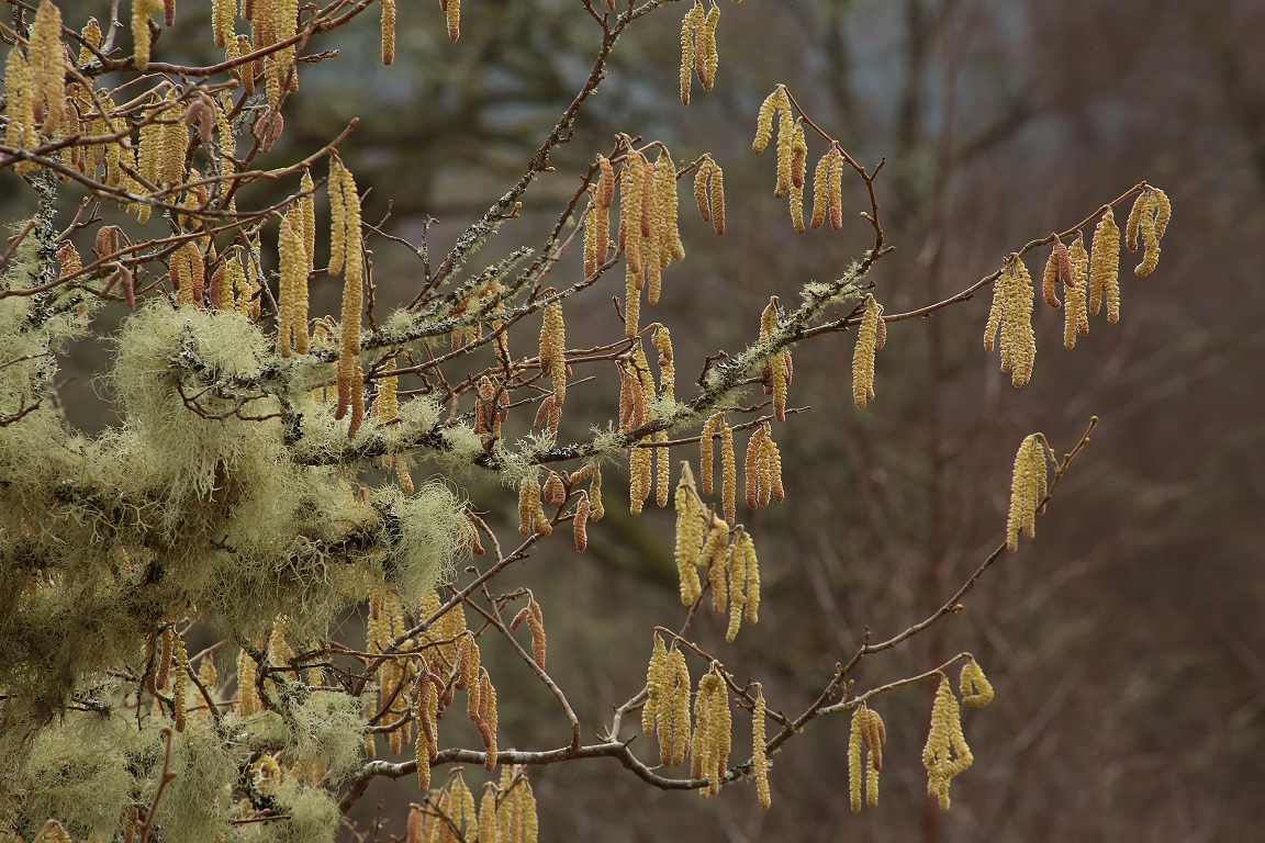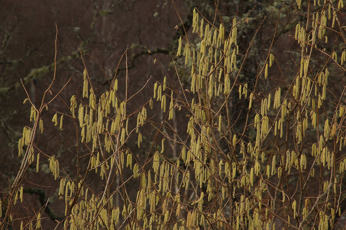 I first noticed hazel catkins this year at the north end of Loch Ness on 8th January, which seemed extraordinarily early, as it’s usually mid- to late-February when the first ones appear. We haven’t had any real winter weather at all – there have been very few days with frosts, and there’s been very little snow either – so everything in Nature is ahead of its usual timing, and the hazel catkins are a clear sign of this. It could almost be the ‘year without a winter’, given the conditions we’ve had so far, but I suspect we may yet see some colder weather before spring is fully here.