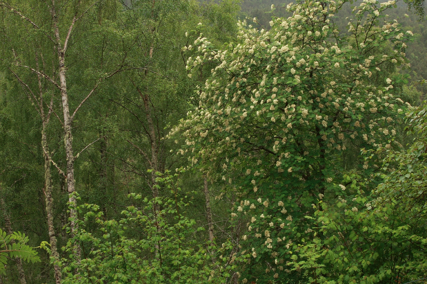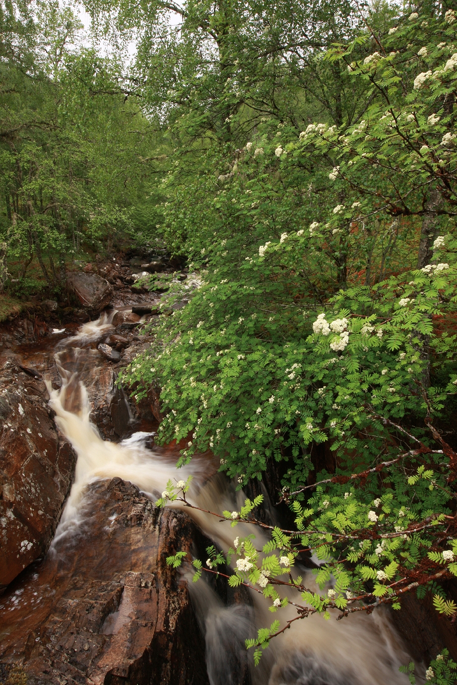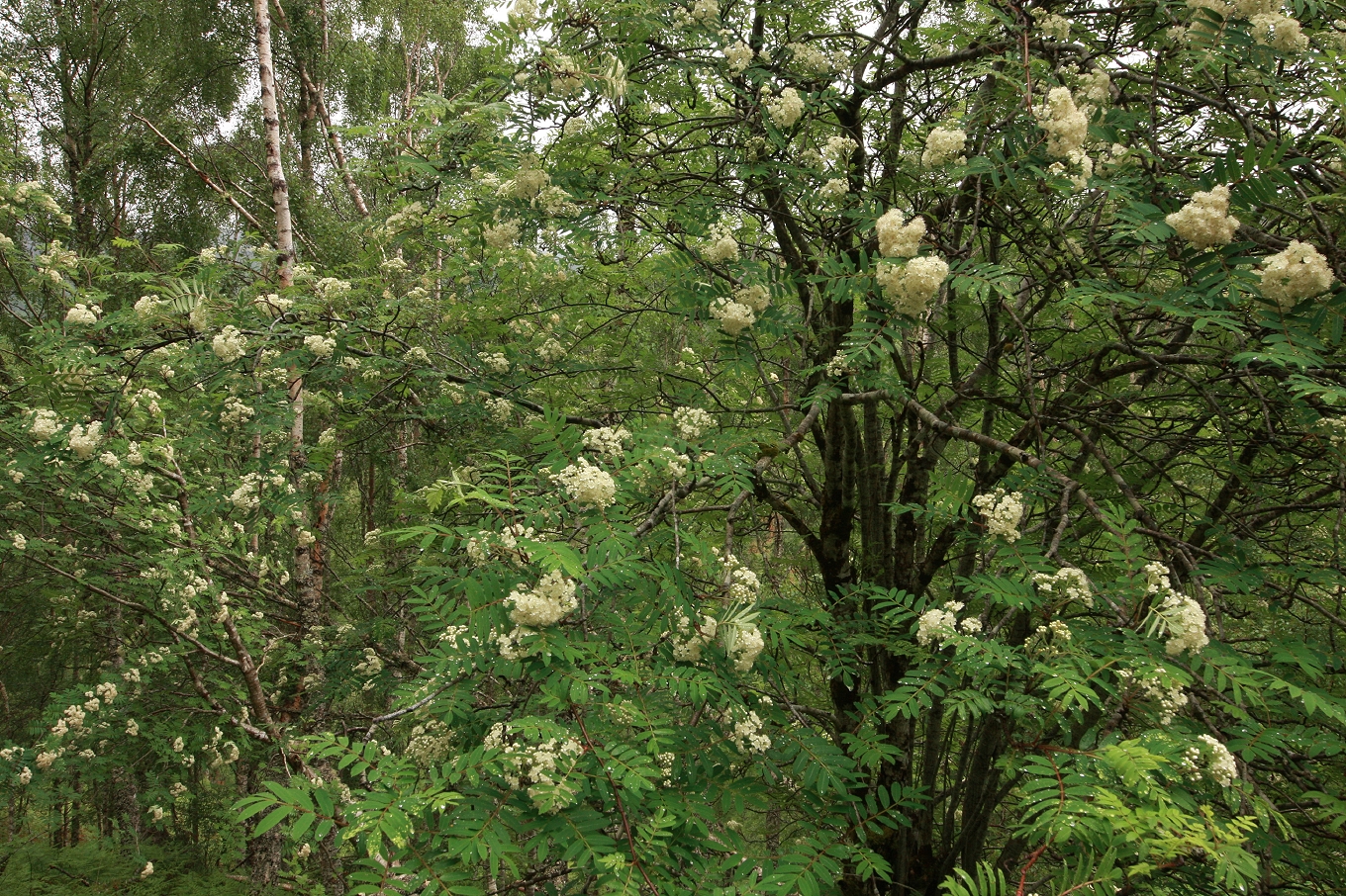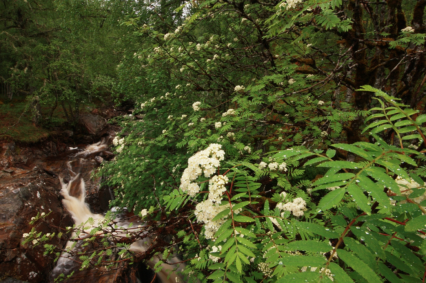 Driving up into the glen, just as I reached the cattle grid that marks the boundary of the National Nature Reserve (NNR), I saw a rowan tree (Sorbus aucuparia) in full flower close to the road. It was stunning in its vitality and abundant blossoms, and brought an instant smile to my face and a deep sense of appreciation in my heart.