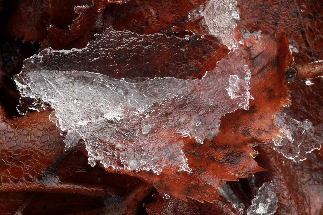 A few drops of rain began falling, and I could literally see the ice melting in front of my eyes – I was the only person who was going to see these ephemeral frozen works of Nature’s art there this day. In situations like this I feel very privileged as a photographer in being able to take a photograph of such transient beauty, and possibly being the only person ever to actually see the subject. It gives me great joy and satisfaction to share such images with others – to pass on some of the wonder that I experience in the world.
