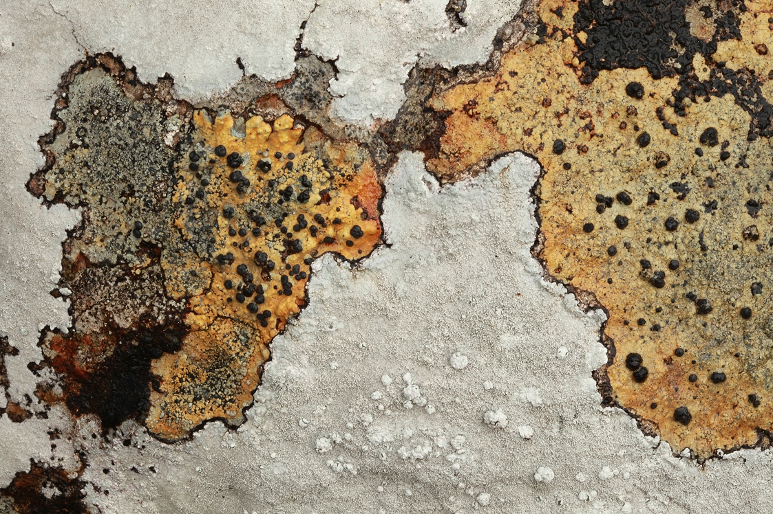 Nearby, there were some groups of small rocks that were covered in beautiful patterns of brightly-coloured lichens and I spent a few minutes appreciating and photographing them. These are crustose lichens, that grow flush with their substrate (ie the rock in this case). Typically they grow very slowly, and some species secrete an acid that dissolves the outer mineral layer of the rock so that the lichen can utilise it as nutrients. In time, when the lichen dies, these nutrients become available for other plants in the ecosystem, so lichens like this play a small but nonetheless significant role in improving the fertility of the soils where they grow.