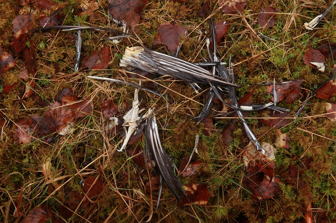 Near one of the trees I found the remains of a bird lying on the ground. It bore all the hallmarks of the work of a raptor, or bird of prey, but I’m not knowledgeable enough about them to know which one it was that would have made the kill. It could have been a buzzard’s handiwork, as that is the most common raptor in the area, and I often hear them overhead – a pair also nested in one of the large Scots pines (Pinus sylvestris) on the estate, about 300 metres to the west, 3 years ago.
