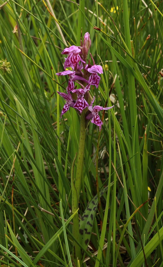 There were other orchid species growing in the same area, including the related early march-orchid (Dactylorhiza incarnata). This has a more flesh-pink colour to its flowers, and the leaves have no spots on them.
