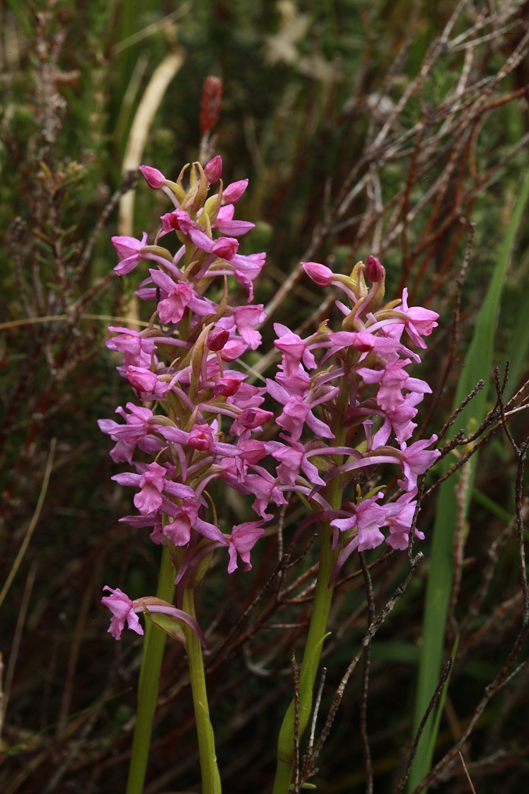 Walking downhill again, I stopped to photograph a cluster of fragrant orchids (Gymnadaenia conopsea) that were growing beside each other. This is one of the most abundant orchids at Dundreggan, and its common name is derived from its characteristic fragrant scent.