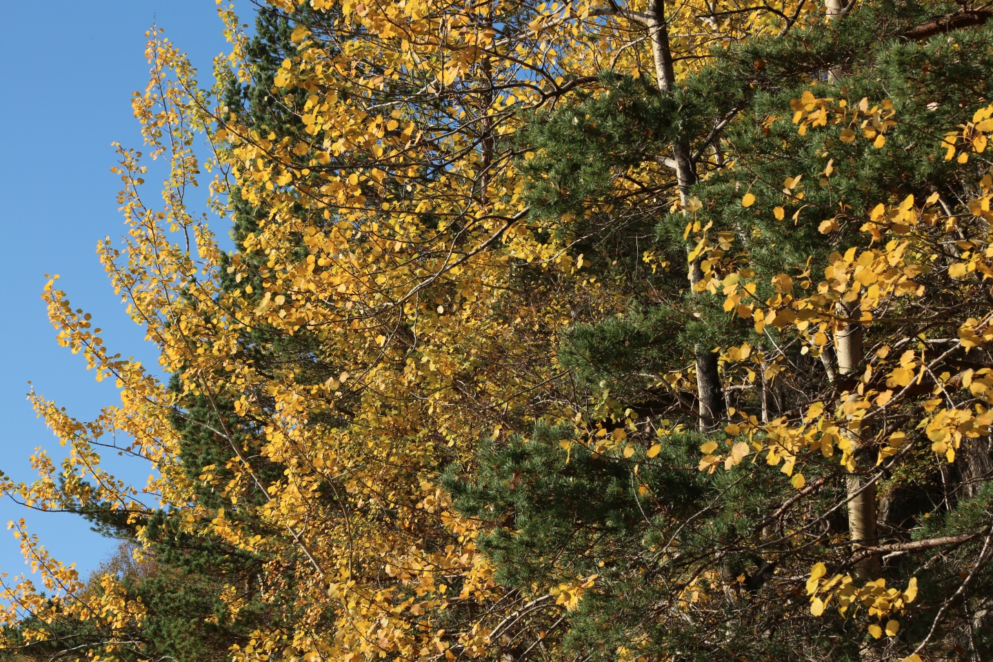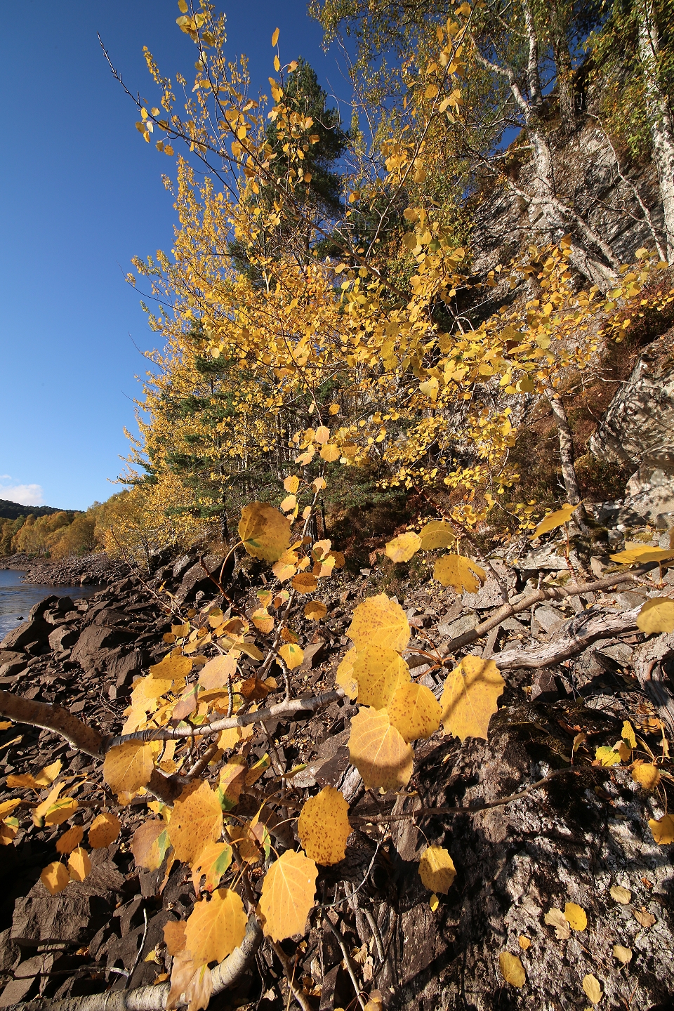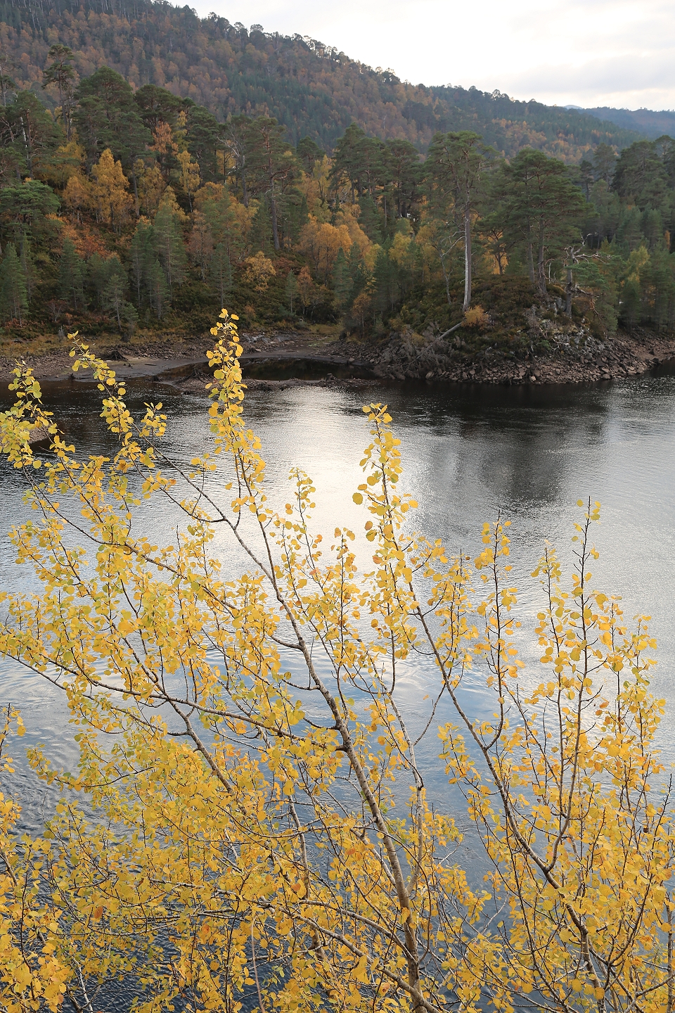 This year was no exception and on Sunday 23rd of October I had a remarkable day there. I was drawn to a group of aspen trees (Populus tremula) that are growing at the base of some cliffs on the north shore of Loch Beinn a’ Mheadhoin, as their leaves were at the peak of their autumn colour.