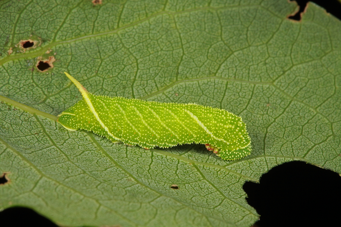 The evidence of this can be seen in the photograph here, in the form of the white spots at several points on the leaf surface, around the caterpillar itself.