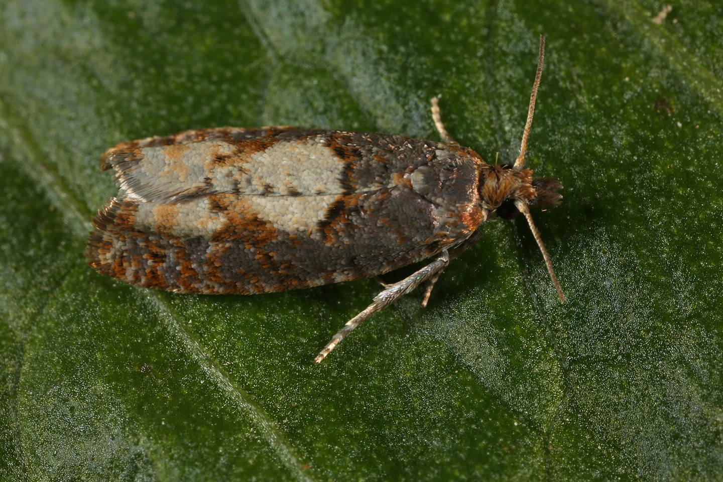 I duly went off to Ireland, and when I returned, I got an email from Bob a few days later, towards the end of August, saying that the adult micro-moth had emerged! He’d been able to identify it, and although it wasn’t the species he had thought, it was a closely-related one, Epinotia trigonella, which is quite common throughout the country. However, he suspected that it hadn’t been recorded from dwarf birch before.