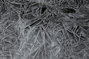When I eventually moved on from this miniature ice extravaganza on the small burn, I didn’t walk very far before I spotted some more ice formations, this time at the edge of the Affric River itself. These were at a slow moving, flat section of the river, without any cascades, and the stillness of the water amongst some rocks at the edge had enabled the surface to freeze over. As a result, there was a remarkable jumble of angular shapes in the ice that had developed around the small part of a rock that protruded above the surface.