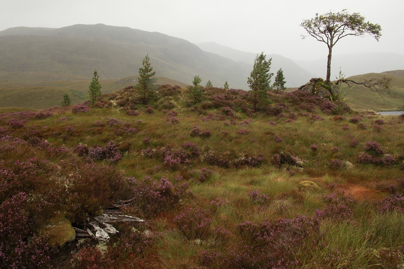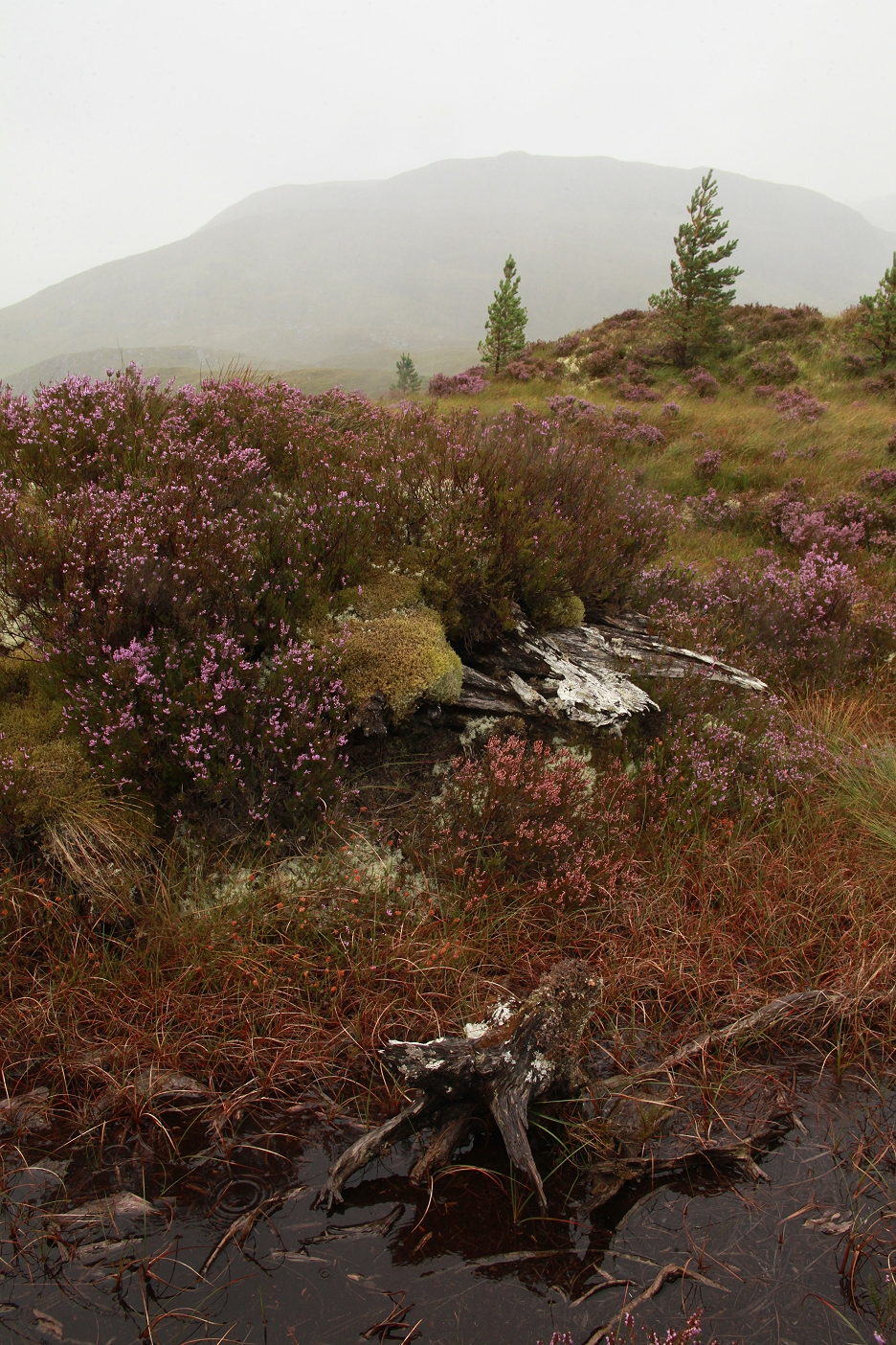 Heather in flower in an area of old Scots pines in a sheltered spot further east in the glen, on the south side of Loch Affric.
