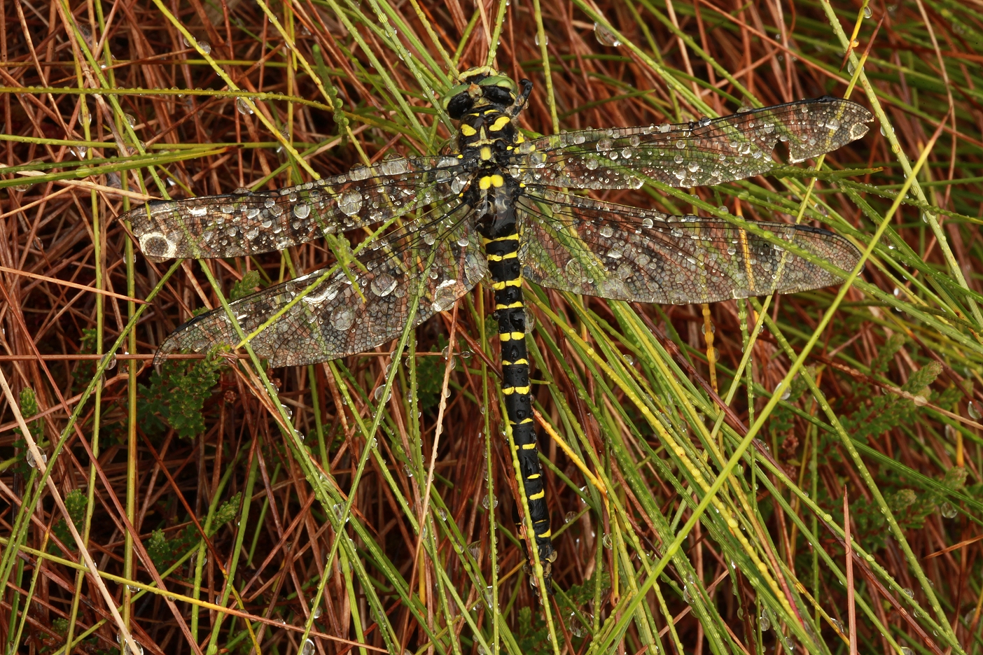 This golden-ringed dragonfly (Cordulegaster boltonii) was unable to fly in the wet and windy conditions.