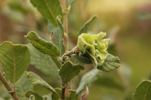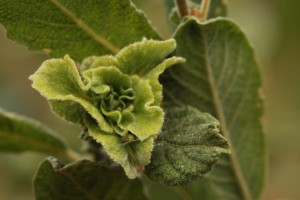 This unusual growth at the tip of a shoot of the eared willow is a terminal rosette gall induced by a midge (Rhabdophaga rosaria).
